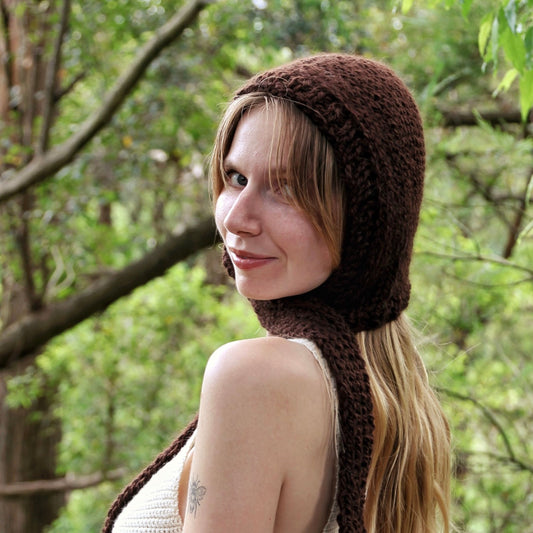 Sold outChocolate Knitted Bonnet